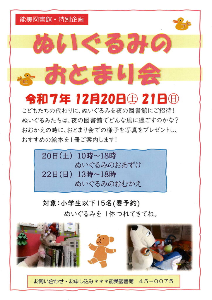 ☆ぬいぐるみのおむかえ 12月21日(日)午後1時~午後6時