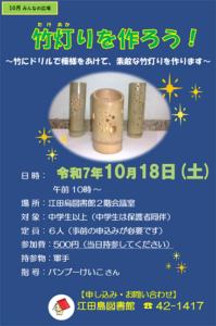 竹にドリルで模様をあけて、素敵な竹灯りを作ります。