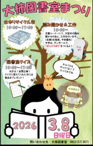 令和8年3月8日(日)に大柿図書館まつりを行います。様々なイベントを行いますのでぜひご来室下さい。