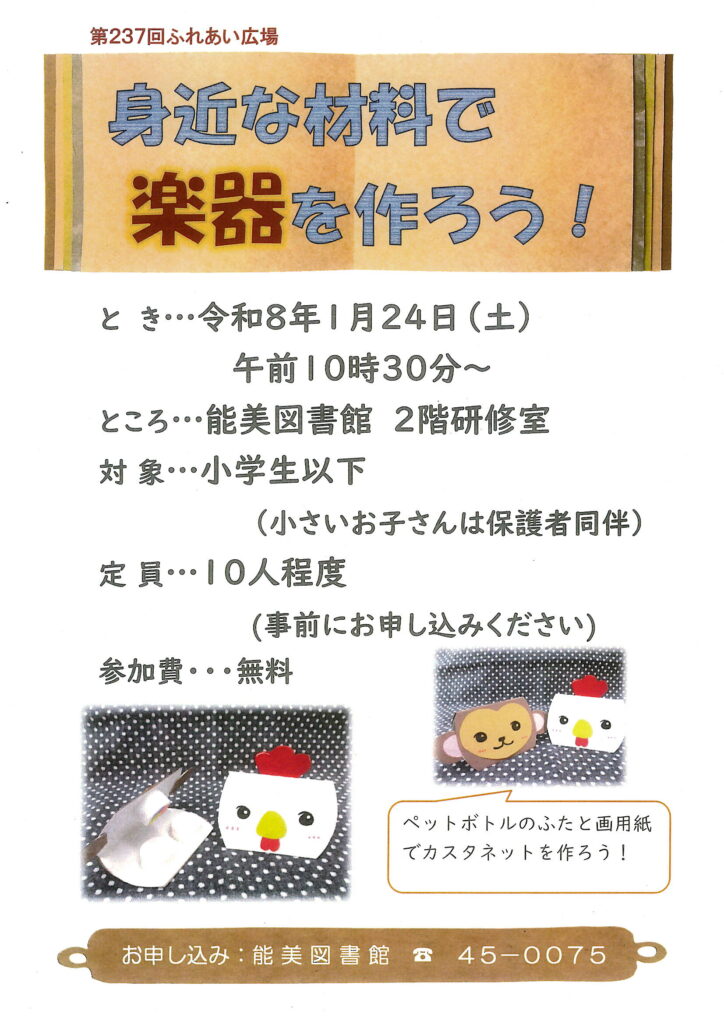 第237回ふれあい広場「身近な材料で楽器を作ろう」